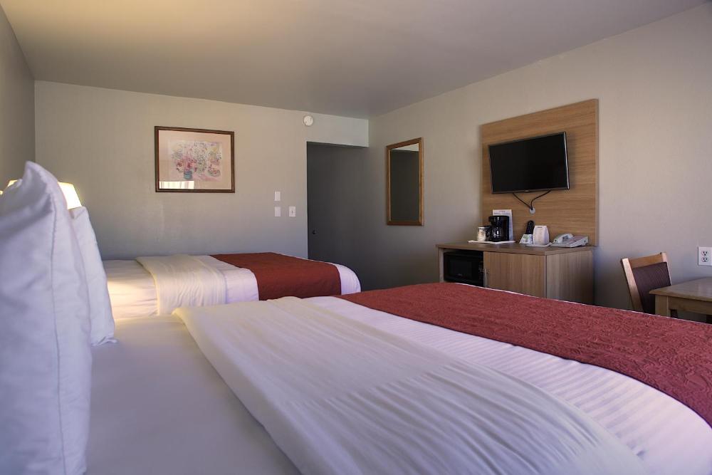 Room features a cable TV, a microwave, a fridge and a work desk.